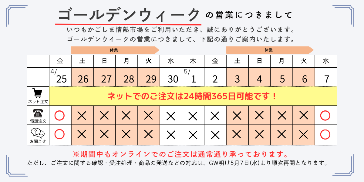 ■GW期間中の発送についてのご案内